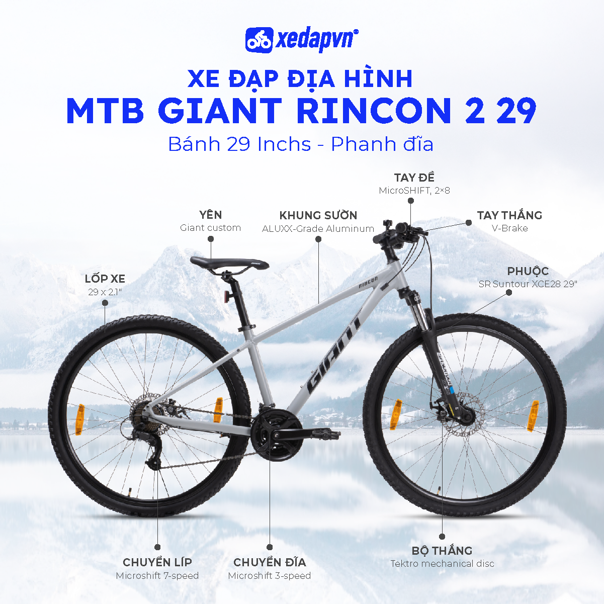 Xe đạp địa hình MTB GIANT Rincon 2 29 là một trong những dòng sản phẩm có thiết kế rất linh hoạt, người dùng có thể đạp xe nhẹ nhàng trên đường phố hoặc chinh phục những địa hình phức tạp. Với mức giá phải chăng thì sản phẩm này chính là sự lựa chọn lý tưởng dành cho những bạn yêu thích trải nghiệm các chuyến đi phượt bằng xe đạp, hoặc đơn giản là có nhu cầu cần một phương tiện để đi học, đi làm.