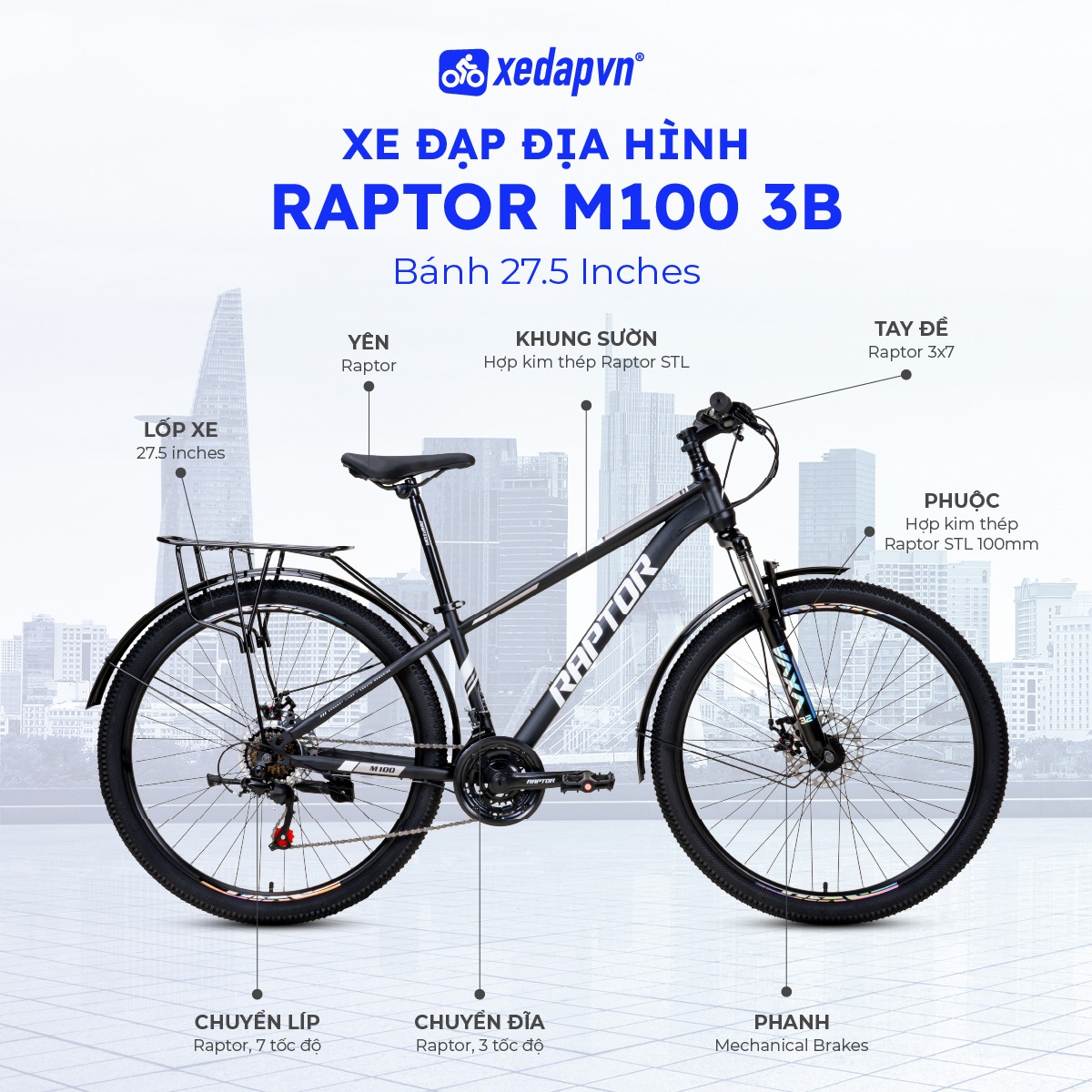 Đánh giá sản phẩm: "Xe Đạp Địa Hình MTB RAPTOR M100 3B - Phanh Đĩa, Bánh 27.5 Inches"
