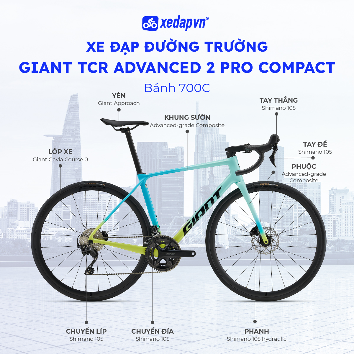 GIANT TCR Advanced 2 Pro Compact 2026 là mẫu xe đạp đua đường trường hướng đến người chơi road nghiêm túc, cần một chiếc xe nhẹ, cứng cáp và phản hồi chính xác để tập luyện cường độ cao và thi đấu phong trào. Thiết kế khí động học cùng phanh đĩa giúp xe vận hành ổn định và an toàn ở tốc độ cao.