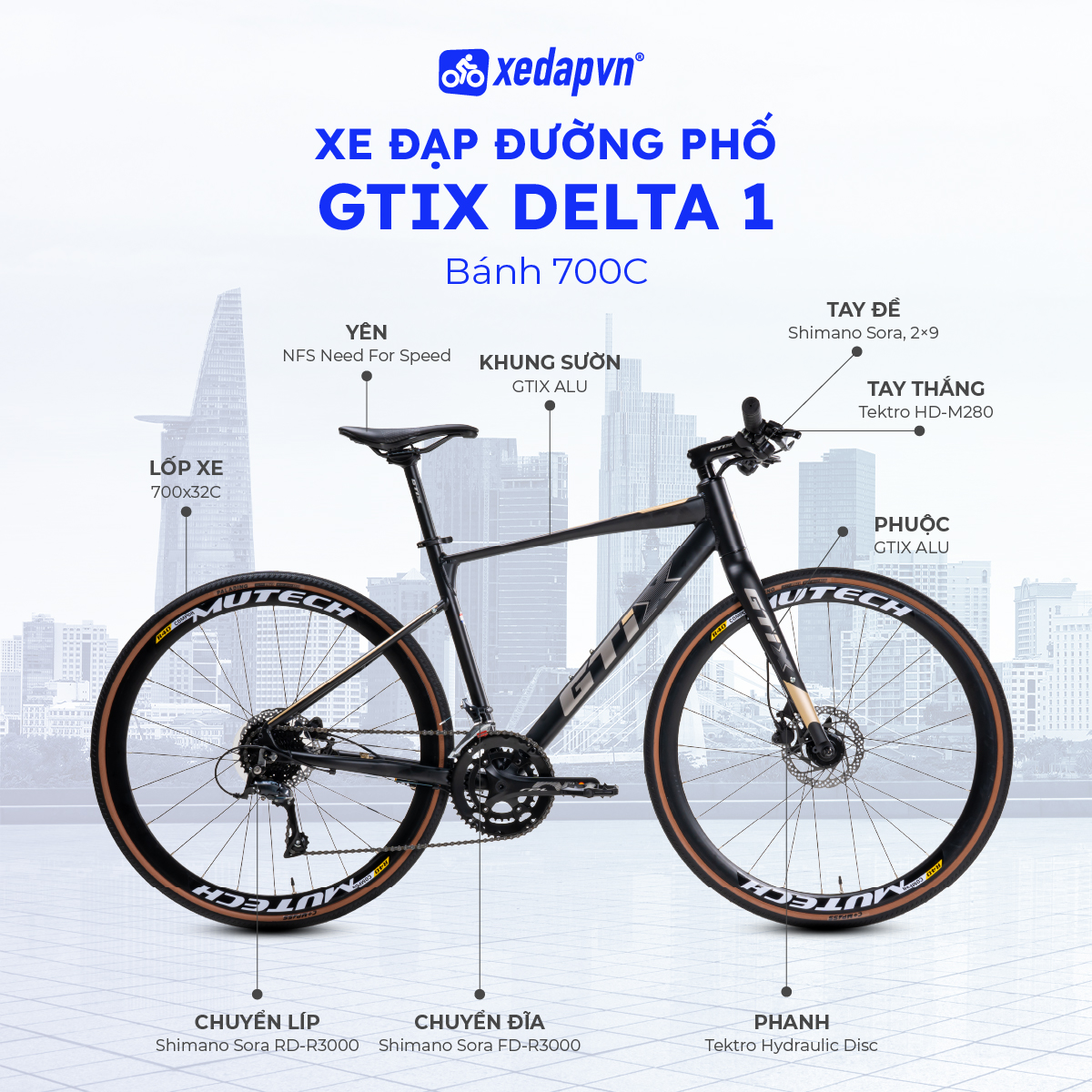 GTIX Delta 1 là mẫu xe đạp đường phố – touring mang phong cách thể thao, phù hợp cho người dùng cần một chiếc xe nhẹ, lăn nhanh và linh hoạt để đi làm, đi học hoặc rèn luyện thể lực mỗi ngày. Thiết kế bánh 700C kết hợp phanh đĩa giúp xe vận hành ổn định và an toàn trong môi trường đô thị.