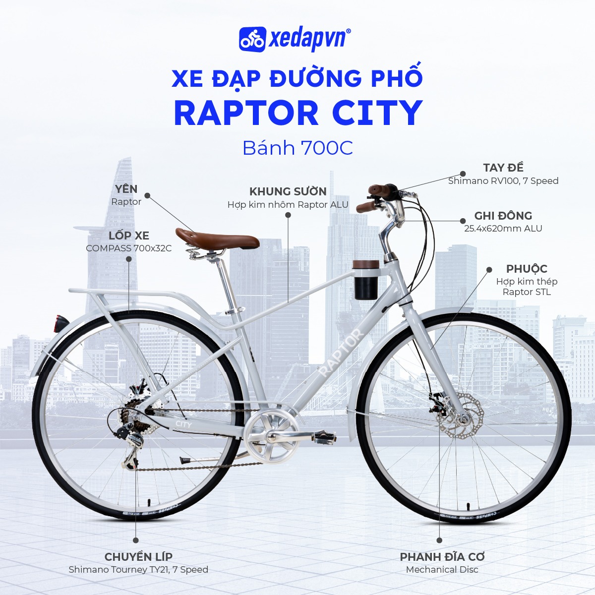 Đánh giá sản phẩm: "Xe Đạp Đường Phố Touring RAPTOR City - Phanh Đĩa, Bánh 700C"