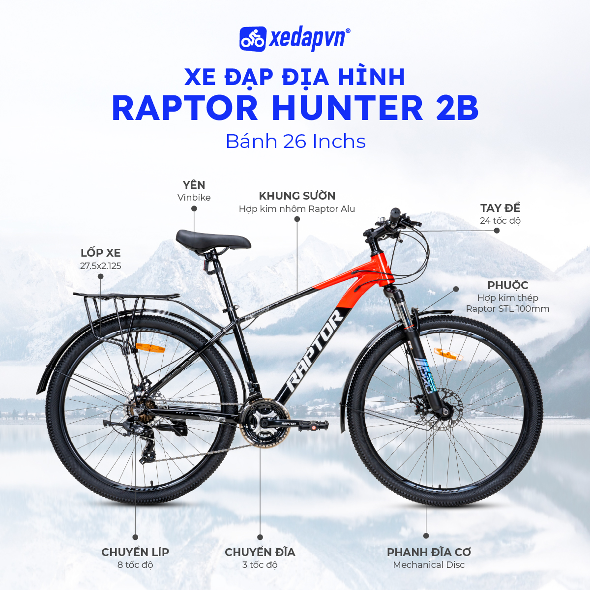Xe Đạp Địa Hình MTB RAPTOR Hunter 2B – Phanh Đĩa, Bánh 26 Inch