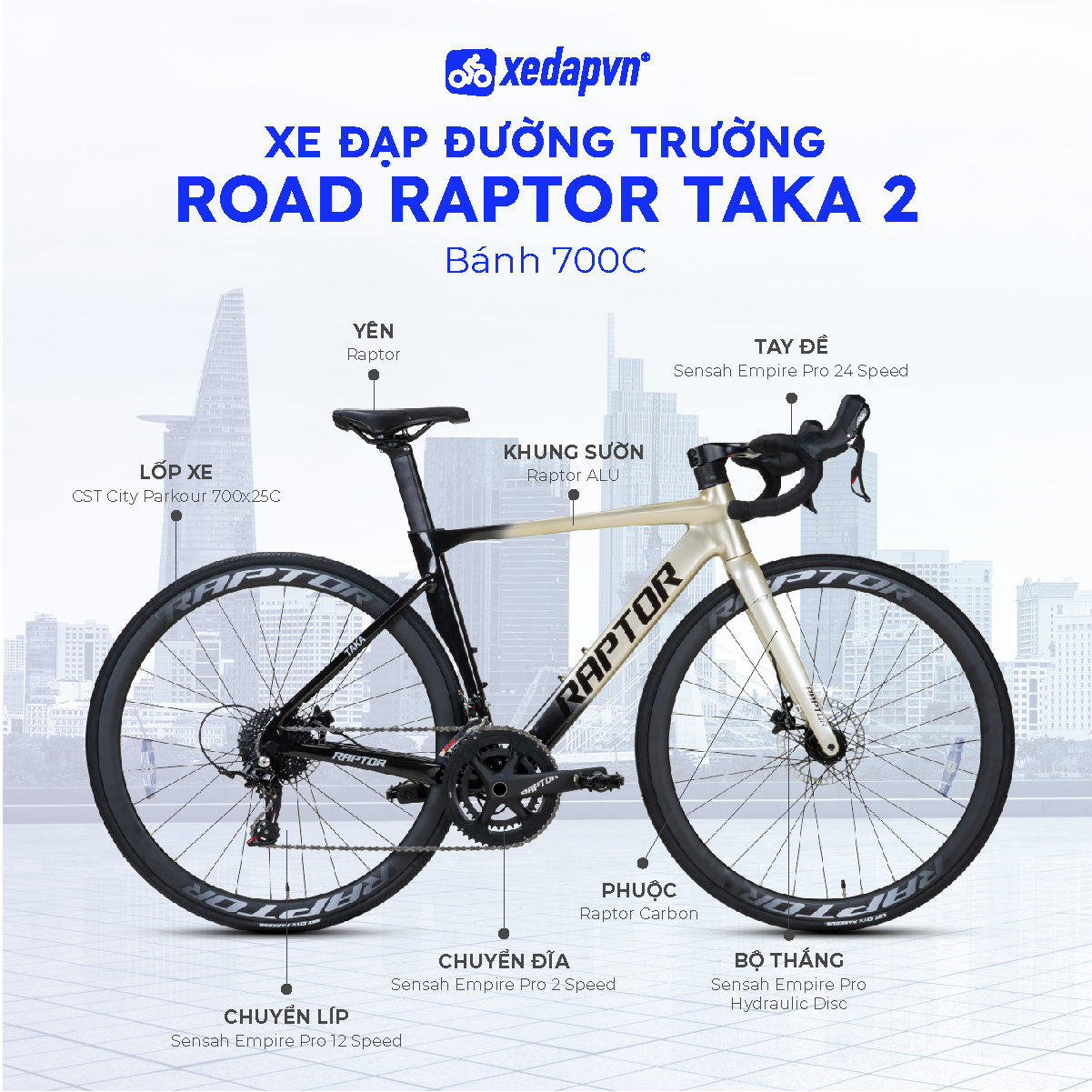 Xe Đạp Đường Trường RAPTOR Taka 2 – Bánh 700C