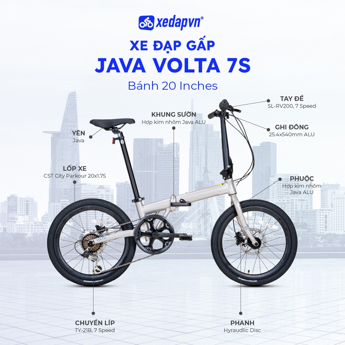 Đánh giá sản phẩm: "Xe Đạp Gấp Folding JAVA Volta 7S-20 - Phanh Đĩa, Bánh 20 Inches"