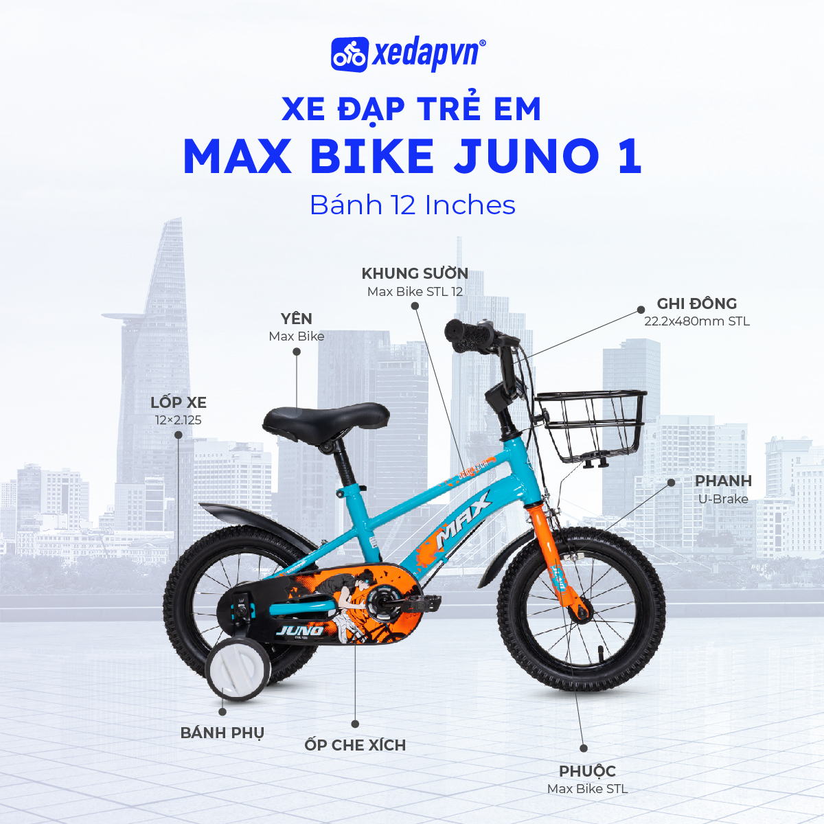 MAX BIKE Juno 1 – bánh 12 inch là mẫu xe đạp trẻ em được thiết kế dành riêng cho các bé ở giai đoạn đầu làm quen với việc đạp xe. Kích thước bánh 12 inch nhỏ gọn giúp xe dễ điều khiển, tạo cảm giác an toàn và tự tin cho bé trong những vòng đạp đầu tiên.