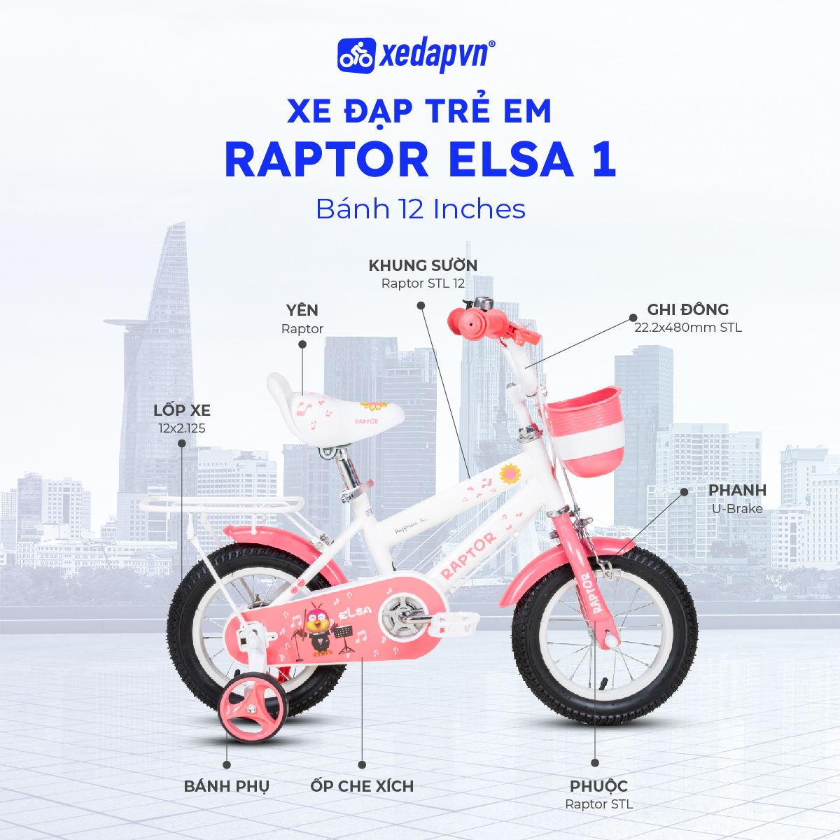RAPTOR Elsa 1 – bánh 12 inch là mẫu xe đạp trẻ em được thiết kế dành cho các bé ở độ tuổi rất nhỏ, giai đoạn bắt đầu làm quen với việc giữ thăng bằng và đạp xe. Kích thước 12 inch nhỏ gọn giúp bé dễ kiểm soát, tạo cảm giác an toàn và tự tin ngay từ những lần tập đạp đầu tiên.