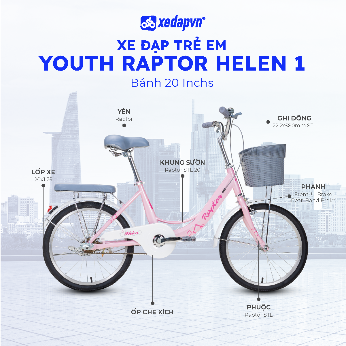 Chiếc xe đạp Youth RAPTOR Helen 1 là món quà lý tưởng dành cho các bé từ 6 đến 9 tuổi, đặc biệt phù hợp với những bạn nhỏ thích vận động, khám phá và tận hưởng các chuyến đi cùng bạn bè hay gia đình.