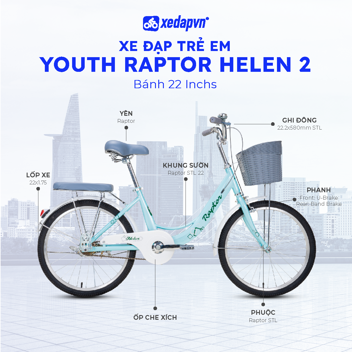 Chiếc xe đạp Youth RAPTOR Helen 2 là món quà lý tưởng dành cho các bé từ 8 đến 11 tuổi, đặc biệt phù hợp với những bạn nhỏ thích vận động, khám phá và tận hưởng các chuyến đi cùng bạn bè hay gia đình.