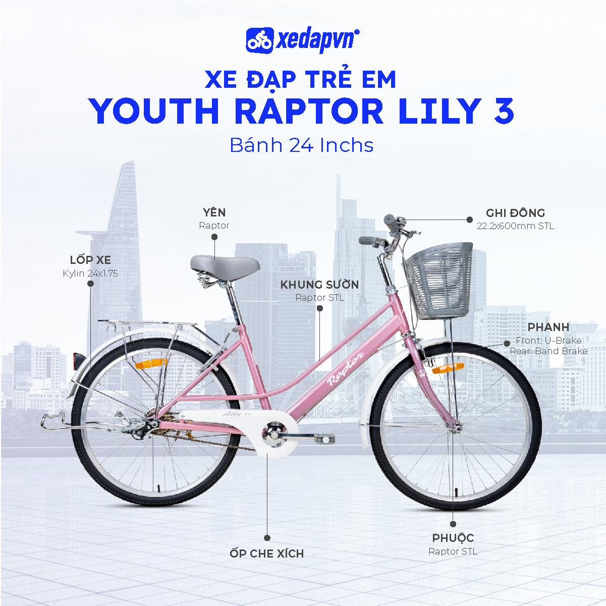 Chiếc xe đạp RAPTOR Lily 3 là lựa chọn lý tưởng dành cho các bé gái từ 8 đến 12 tuổi. Với thiết kế hiện đại, màu sắc đẹp mắt và khả năng vận hành ổn định, chiếc xe không chỉ là phương tiện di chuyển hàng ngày mà còn là người bạn đồng hành trong những buổi đi học, dạo phố hay vui chơi cùng bạn bè.